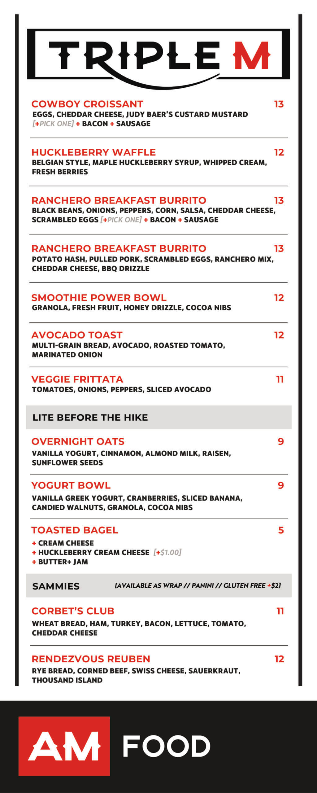 The Triple M @ Mountain Modern is just a quick jaunt from your room or suite – meaning coffee STAT! Our social hub is brimming with creature comforts that encourage conversations and nurture connections amongst our guests. Try our Cowboy Croissant or Huckleberry Waffle before you head out for a day of exploration. Settle in for some casual bites or enjoy grab-and-go items to get “up-and-at-em” and on your way!